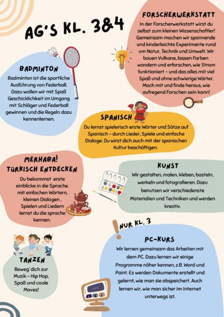 AG´s am Nachmittag für die 3. & 4. Klassen